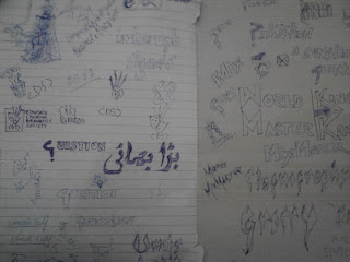 بچپن سے مجھے یہ عادت رہی کہ جب مین کچھ سن رہا ہوں، خاص طور پر کمرہ جماعت میں(یا لیکچر ہال میں) تو میرے ہاتھ چلتے رہتے ہیں۔ سامنے کتاب ہو، کاپی ہو یا پھر ڈیسک تو ہوتا ہی ہے تو جو بھی قلم یا پین ہاتھ میں ہے ، وہ بس آگے پیچھے، دائیں بائیں چلتا ہی رہے گا۔ لکیریں، پھول بوٹے، دائرے، دستخط، نام یا لیکچر میں سے کوئی ایک خاص لفظ بار بار مختلف انداز میں، بس کچھ نہ کچھ تخلیقی مراحل میں رہتا ہی ہے ۔ اس کا یہ مطلب ہرگزنہیں ہوتا تھا کہ میں سن نہیں رہا ہوتا، بس یہ عادت سی بن گئی ہے۔ سکول کے علاوہ کیونکہ سکول کی کاپیوں یا کتابوں پہ تو کچھ بھی ’آف دا ریکارڈ‘ لکھو یا بناؤ تو شامت ہوتی تھی۔ کالج اور پھر یونیورسٹی میں اساتذہ کی یہ ’اجارہ داری‘ ہماری کتابوں ، کاپیوں یا رجسٹروں پہ نہیں رہتی سو ہر ایک لکھنے کے قابل صفحے پر میں کچھ نہ کچھ حصہ اس گلکاری کیلئے ضرور خود بخود ہی مختص کر دیتا ہوں (پہلا صفحہ ، اور ہر صفحے کا اوپری حاشیہ تو میرا ہوتا ہی ہے!)۔ کئی دفعہ اس عادت سے تنگ آکر اور بعض اوقات ضروری پوائینٹس ان گلکاریوں میں گنوا دینے کی باعث میں نے اس عادت کو دانستہ ختم کرنے کی کوشش کی۔ اور صفحات کو انتہائی صاف رکھنے کی مہم چلائی۔ سنتے سنتے اچانک یاد آیا کہ اوہو! تاریخ تو لکھنا ہی بھول گیا آج کی۔ سو سر کی بات سنتے اور سر دھنتے ہوئے ہاتھ غیر محسوس انداز میں چلنا شروع ہوا۔۔۔ یہ کیا میں تو تاریخ لکھ رہا تھا اور یہ میں نے ’جولائی‘ کو ڈریگن کیسے بنا دیا۔۔۔۔۔۔۔! یہ ’2010‘ کی آنکھیں اور ناک۔۔۔۔۔۔۔ اف توبہ! میں نہیں رہ سکتا بے معنی لکیروں کو شکل دئیے بغیر!! بہت سے لوگ اس کی بہت سی وجوہات بیان کرتے ہیں، جیسے کہ ڈاکٹر حضرات (جی ہاں، وہی نفسیاتی) اسے ذہنی کشمکش اور ذہن پہ کسی بوجھ یا فرار کی راہ قرار دیتے ہیں۔ ہو سکتا ہے یہ درست بھی ہو۔ بورنگ لیکچر سے کون فرار نہیں چاہتا!